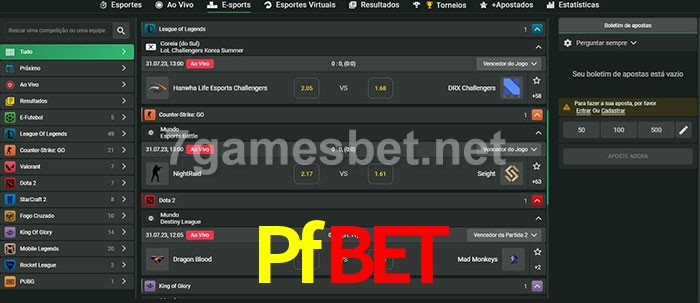 O Pfbet oferece uma grande seleção de opções de apostas em e-sports com probabilidades competitivas